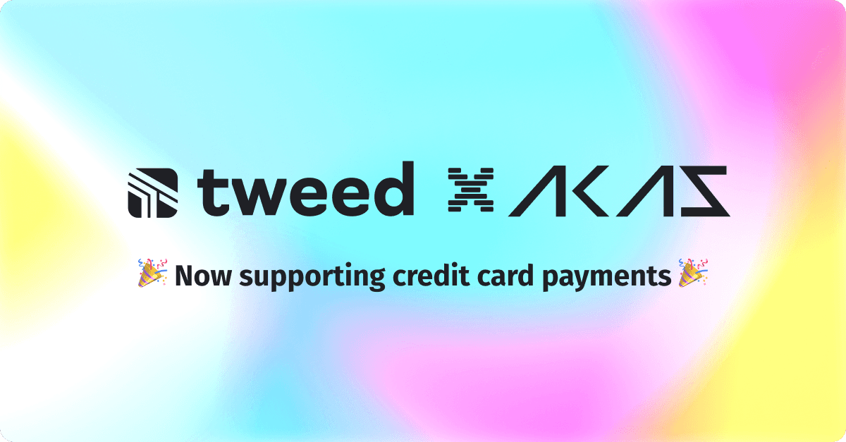 AkaSwap, the first and largest NFT open marketplace based on Tezos in Asia, is live with Tweed’s fiat-to-NFT checkout solution. Now, buyers on Akaswap can use their debit or credit card globally to purchase NFTs, and Akaswap sellers are paid directly in XTZ. Gas fees are covered and handled by Tweed, so buyers don’t need to hold any cryptocurrency to make a purchase.