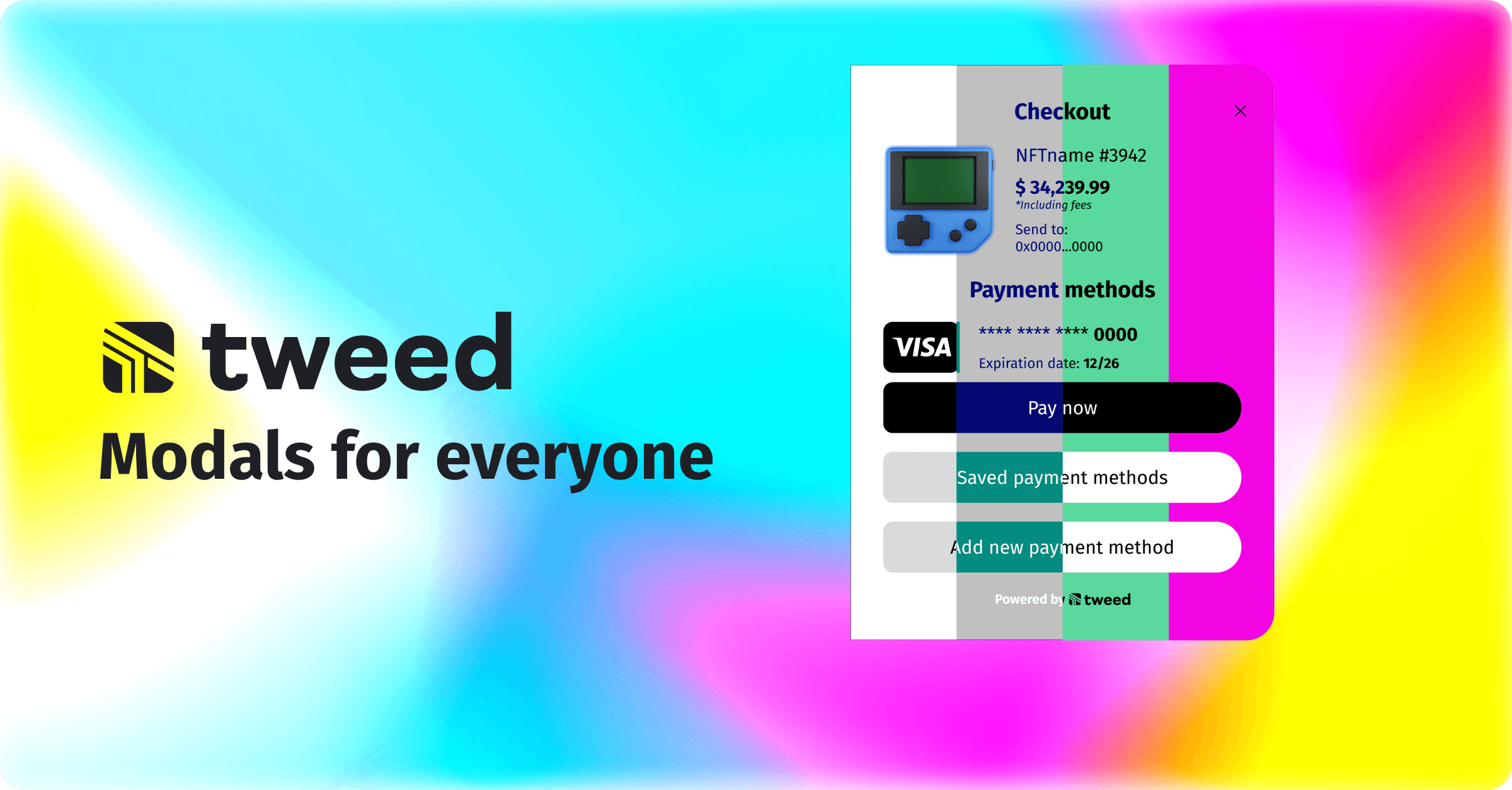 Make the onboarding experience and payment process native to your platform and customize the Tweed modals to fit your brand!